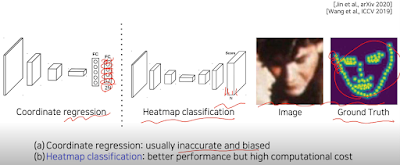 원래는 고전적인 방법으로 사람이 추출했음. keypoint 가 N개 있고 (x,y) 좌표를 가진다면 2N개를 가지고 있는 FC. 근데 안좋다는게 알려지면서 각 keypoint를 서로 다른 class라고 가정해서 모든 pixel마다 그게 keypoint인지 아닌지로 문제를 해결하는 heatmap classification 방법이 고안됨. 하지만 이건 말 그대로 모든 pixel에 대해 고려하기 때문에 계산량이 많다.