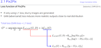 GAN이 CNN으로써 처음 고안된게 Pix2Pix인데 위에서 Loss 쓰면 안좋다고 했지만 써야했던 두가지 이유가 있었다. 첫번째는 Discriminator는 x랑 y가 참인지 거짓인지만 가리는거리 label인 y와의 직접적인 비교가 없다. 그래서 직접적으로 비교해주는 (밑에 -식으로 비교하잖음) 식이 필요했던거고 두번째는 저게 옛날거라 Discriminator만으로는 불안했었다고 한다.