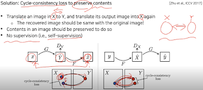 그래서 안의 content도 유치가 되야 한다. 라고 Cycle-consistency loss 도 사용한다.