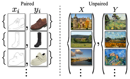 또 Pix2Pix의 단점이 두 데이터셋이 항상 pairwise data여야 한다는 것이다. 하지만 그런 데이터셋은 많지 않다. 그래서 pair 하지 않고도 만들어낼 수 있도록 만들자 한게 CycleGAN. 그래서 CycleGAN은 pairwise datasets이 아니어도 변환이 가능하다.