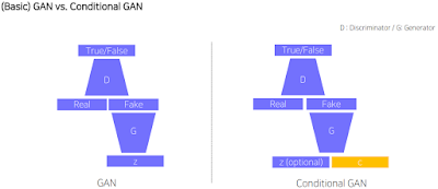 그래서 Conditional GAN과의 차이점은 입력 Condition이 추가되었다는 것임.