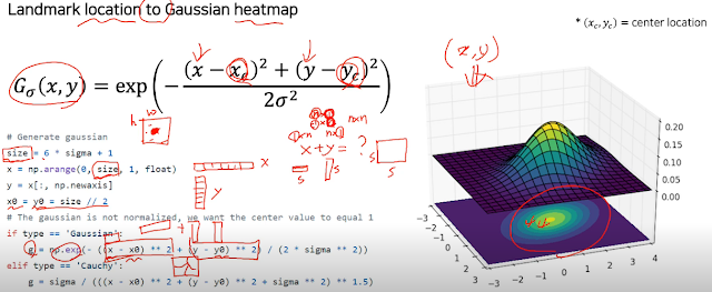 landmark 하나가 (x,y) 이런 식의 label로 주어졌을 때 heatmap label도 생성해야 한다. location에서 heatmap으로 어떻게 변환할 것인가.