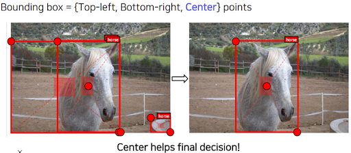 근데 이렇게 하니 중앙점이 중요한 역할을 한다. 그러니 bounding box 조건을 좀 바꾸자. 해서 중앙과 width, height로 바꿈.