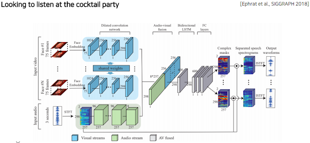 또 다른 모델로는 영상 안에 다른사람 2명이 말하고 있을때 해당 사람의 목소리만 추출하는 형태의 모델이다. 사실 이런 훈련을 시키려면 각 사람의 순수한 말을 추출해야 하기 때문에 두 영상을 합치는 형태로 영상을 합성하여 훈련시키는 방식으로 한다.