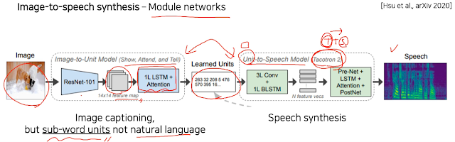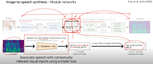 다음은 이미지에서 소리가 나오는 모델을 만들려고 한다. 바로 뽑아내는게 아니라 중간에 단어를 만들고, 그 단어를 가지고 소리를 만들어내는 단계 즉 2개의 모델을 사용해서 만든다고 한다.
