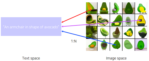 반대로도 가능. 즉 텍스트를 주면 이미지로 내놓는것도 가능한데 텍스트 1개를 주면 수많은 이미지가 나올 수 있다. 이런문제는 그냥 generative model로써 푸는게 낫다.