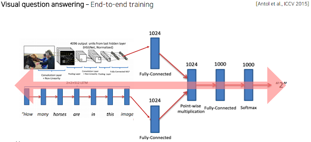 Image stream이랑 Question stream으로 나눠서 스스로 이미지를 보고 질문에 답하는 모델을 만든다. 둘이 연결할 때 전에 했던것들과 마찬가지로 차원을 맞춘다.
