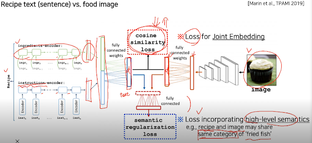 유사한 loss는 cosine 유사도로 점검한다. 이 loss가 joint embedding 에 대한 loss. 이것만으로는 부족하다고 semantic regularization loss를 쓴다고 한다. 전체 정보에서 일부의 정보만이라도 일단은 중요하게 catch했으면 좋겠다. 라고 한다.