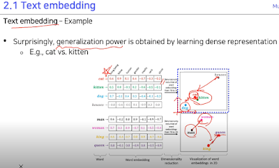 각 단어의 embedding vector는 각 element가 정보를 가지고 있고 단어의 거리를 이용해 비슷한 애들끼리는 뭉쳐있고 거리관계가 비슷하고 등..