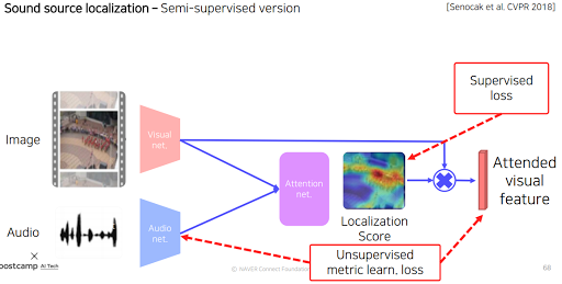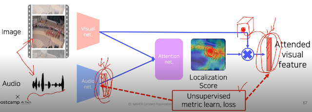근데 우리가 전시간에 물체에 대한 heatmap을 나타내는 법을 배웠다. 보통 영상은 그 영상의 물체 소리가 그 영상에서 나오는 거니까 물체 위치를 추출하는 heatmap을 이용해서 물체 위치랑 소리를 이용해 스스로 학습하게 할 수 있을것 같다. 즉 unsupervised learn이 가능하다.