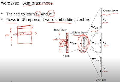 그래서 word2vec 모델에선 고양이다! 고 하면 고양이 부분의 one-hot vector만 1로 하면 embedding vector에서 고양이에 해당하는 부분만 활성화 시켜서 그 부분에 대해서만 학습하는 것 같다.