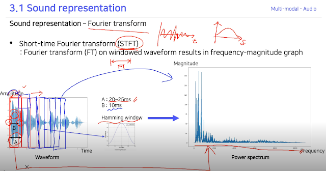 이렇게 하는걸 Fourier transform(FT) 이라고 하고 window로 작은 부분만 변환해주니까 Short-time Fourier transform(STFT) 라고 하는것 같다. 이걸 왜 하냐?