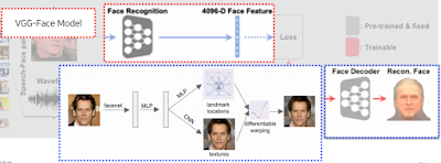 모델 Speech2Face Model의 목적이 소리만 듣고 그 사람의 얼굴을 파악하는 거다. 그래서 소리만 듣고 학습하는 모델을 만드는데 이게 위에서 사용한 VGG-Face Model의 output 과 비슷하도록 둘의 차이를 loss로 만들어 학습시킨다. 이렇게 하면 우리가 만든 모델이 소리만 듣고 VGG-Face Model의 output을 모방하여 나오게 되므로 그대로 Face Decoder에 넣어 얼굴이 나오게 된다.