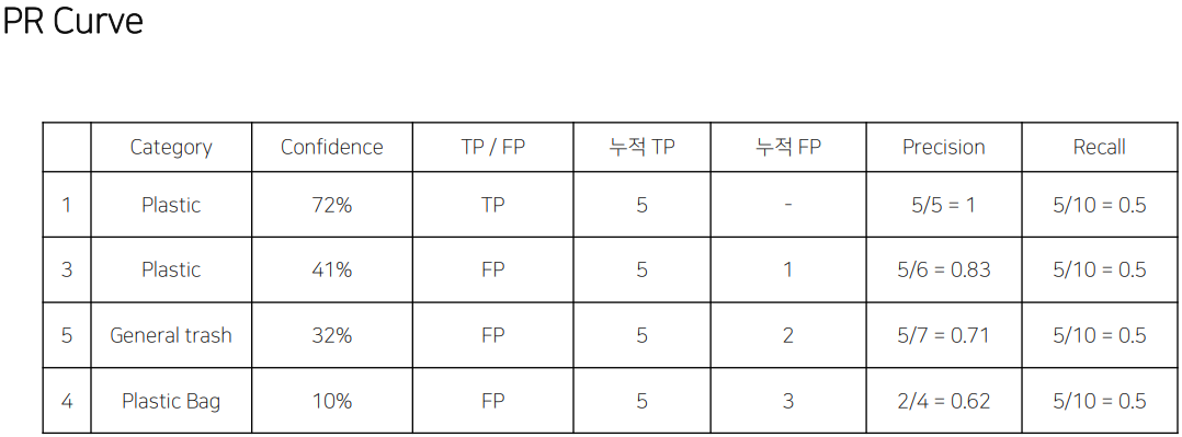 Precision은 이미 감지한 물체중에서 정답이 얼마나 있느냐