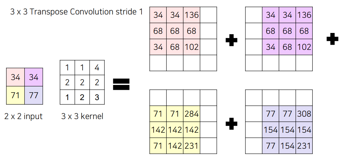 • 엄밀한 명칭은 Transposed Convolution이라고 부르는게 정확 하지만 많이들