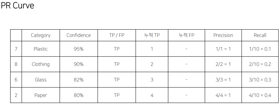 Precision은 이미 감지한 물체중에서 정답이 얼마나 있느냐