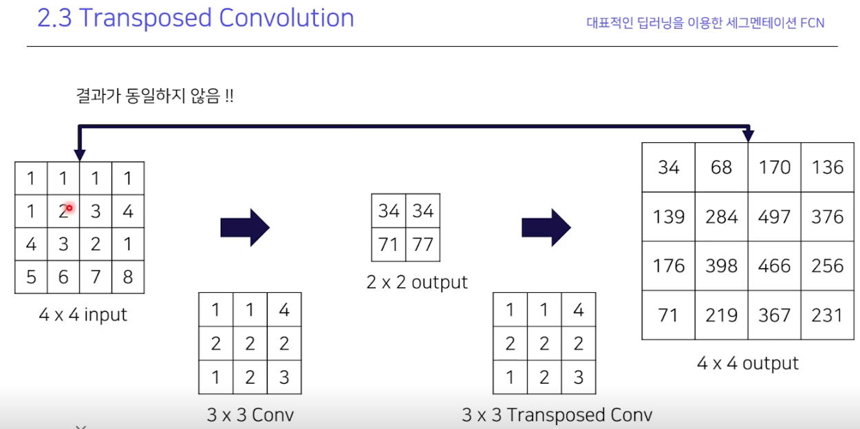 줄어든 이미지를 다시 키우는 Convolution이라는 점