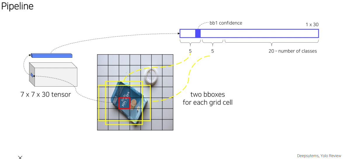 Yolo는 각각의 grid에 대한 결과를 하나의 열로 정리해서 모두 한번에 해결하는 거인듯.