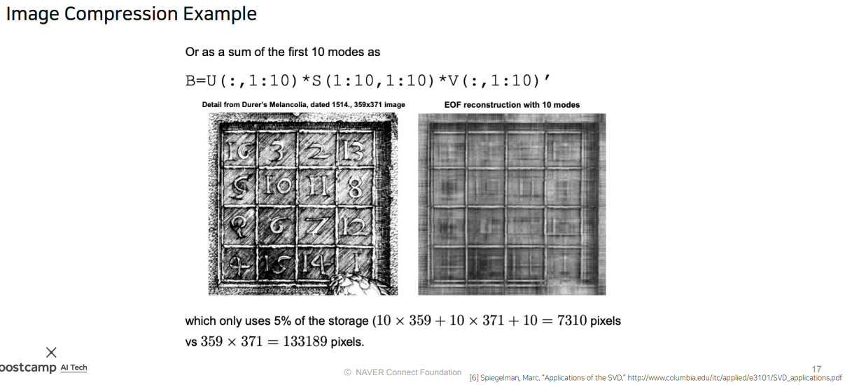 그림 예시를 보면 더 알 수 있다. 앞의 10가지로만 해도 그림의 전체적인 윤곽이 다 드러나면서도 원래 pixel의 10% 도 안씀.
