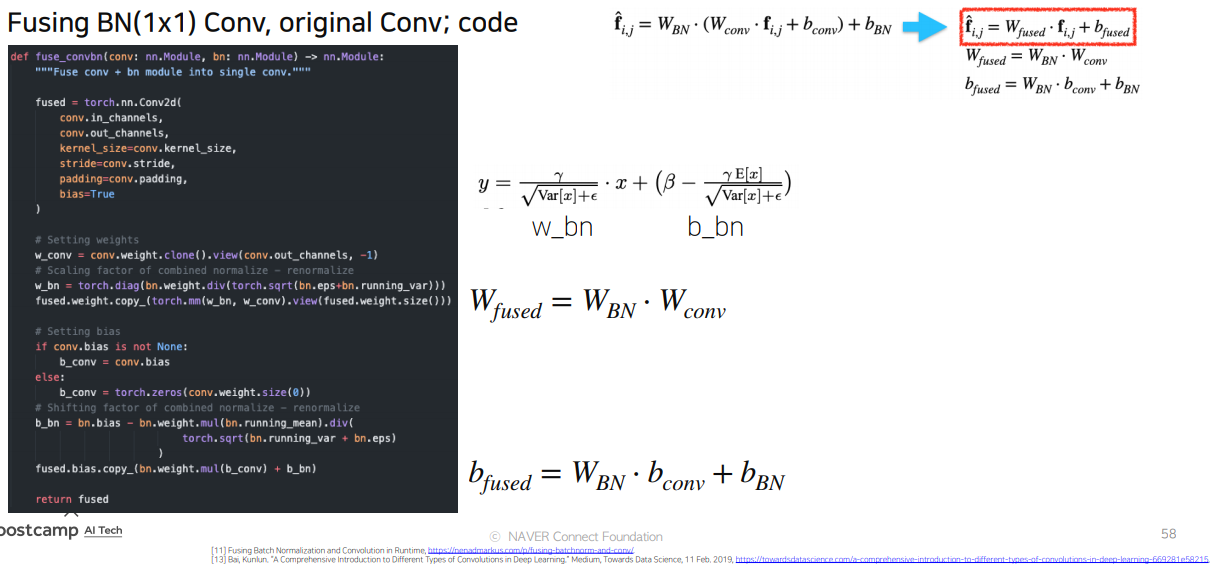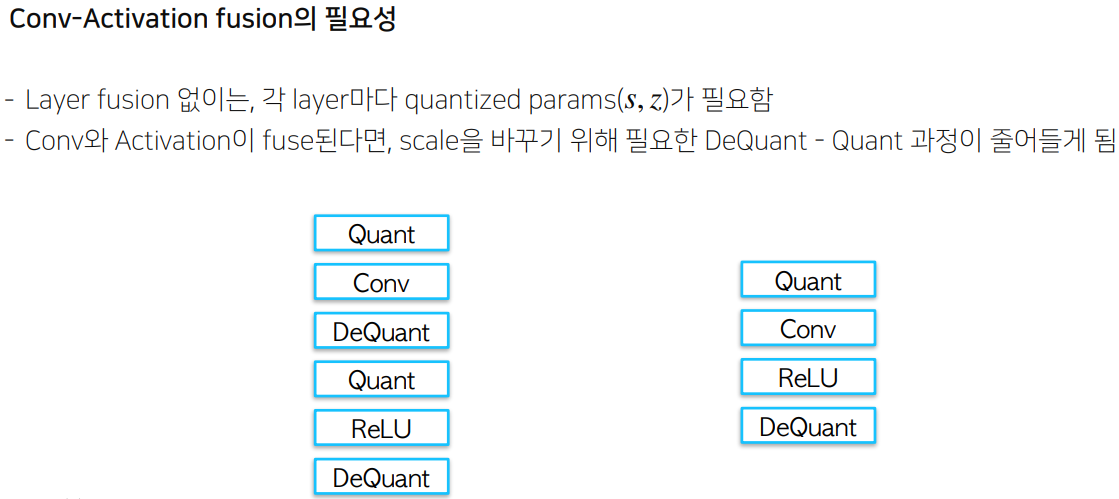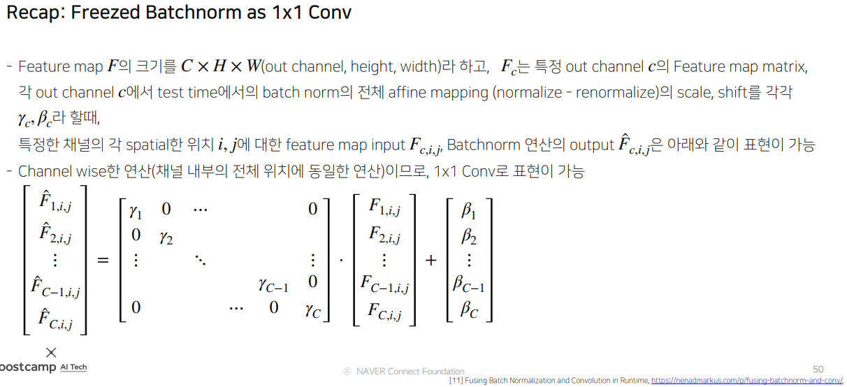 Conv 뒤엔 어차피 batchnorm, relu 나오는데 두개를 합치는게 어떨까 해서 두 layer를 fuse하여 하나의 Conv layer로 표현.