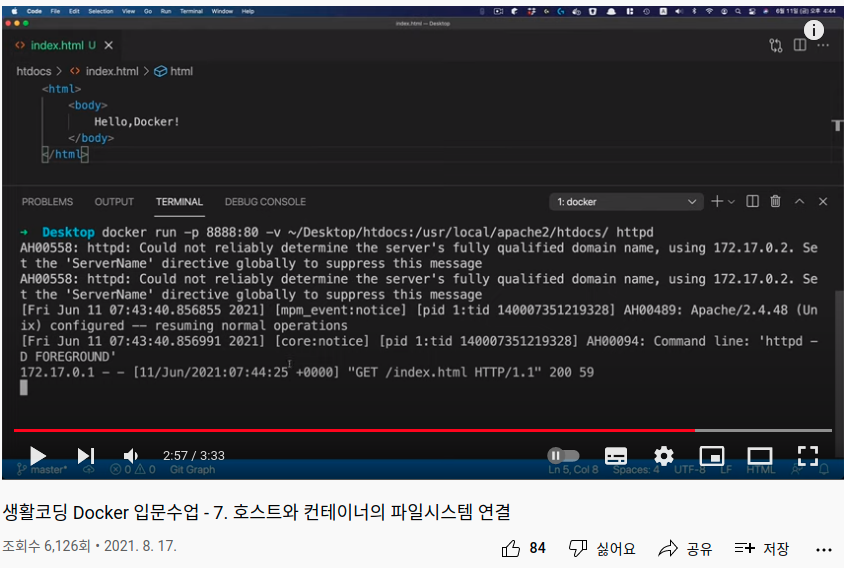 docker run -p 8888:80 -v ~/Desktop/htdocs:/usr/apache2/htdocs/ httpd