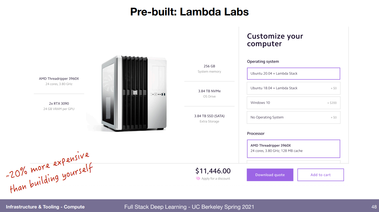 그 외에 재미있는 고려사항도 말해줌. 만약 rtx 30시리즈를 쓰겠다면 이게 전력과 열을 많이 잡아먹어서 개인으로는 2개가 최대일 거다. 반면 rtx 20은 4개까지 가능한데 그럼 뭘 돌릴거냐? 등.