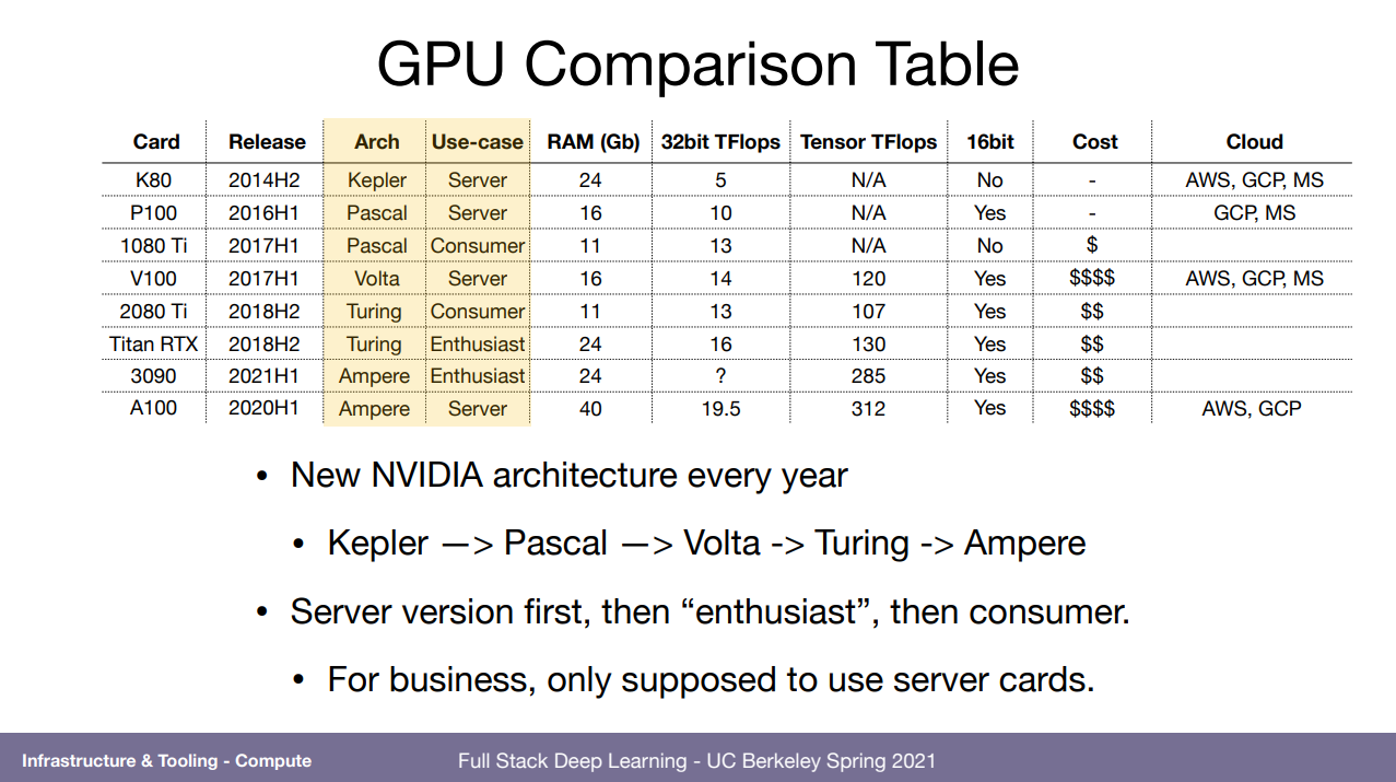글카 순위 및 정보 표. 16bit는 이제 mixed-precision라고 32bit로 돌리는걸 16bit로 바꿔서 돌리는건데 그걸 더 빨리 할 수 있다.