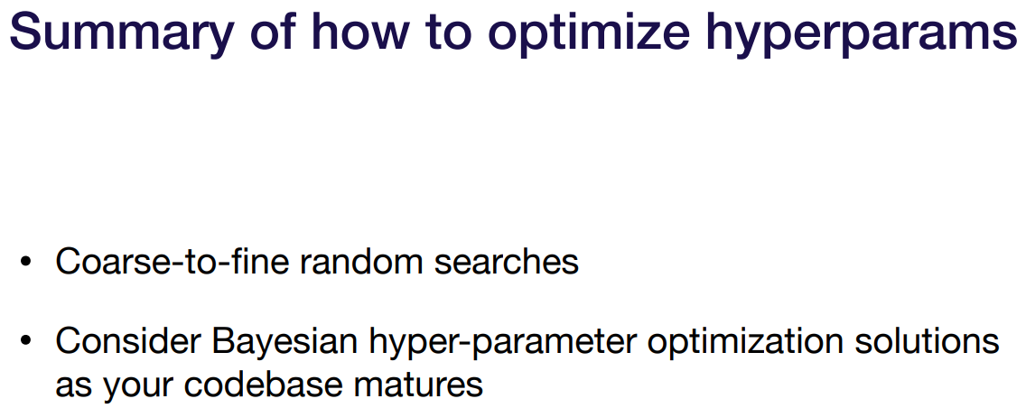 coarse-to-fine은 random search에서 좀 더 잘나오는 곳 같으면 거기서 다시 해보고, 다시 해보고.. 를 함. 관점을 만들고 실용적인 듯. 다만 직접 짜야하는게 있는듯. 강사도 이걸 추천했음.