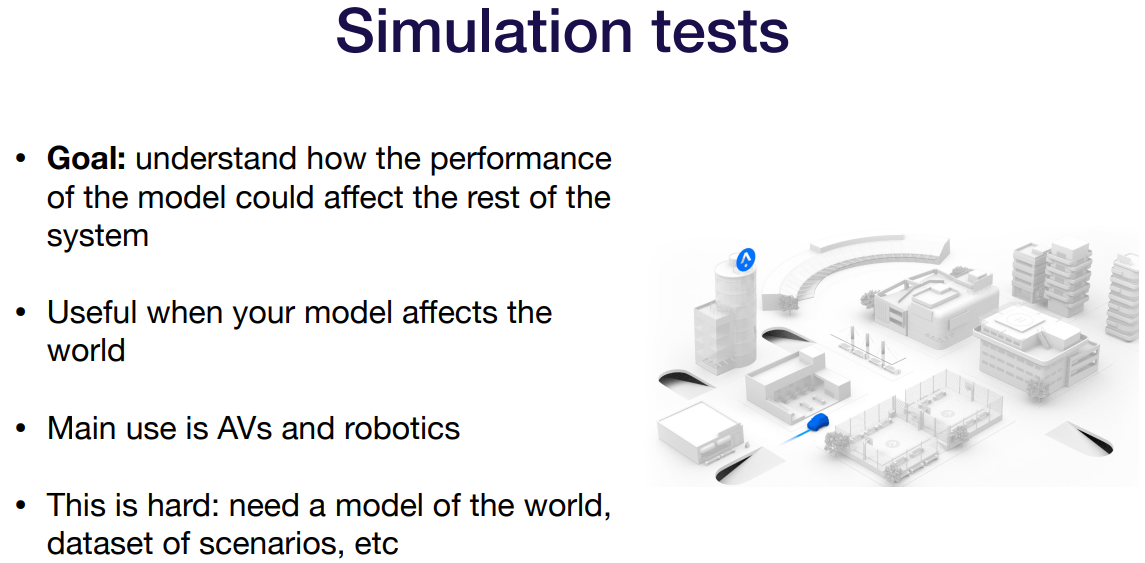 simulation tests는 비전족인듯. 자동운전을 예로 들었을 때 각각의 경우가 독립적인 여러 시나리오를 적용해봐야 한다. 물론 어려움.