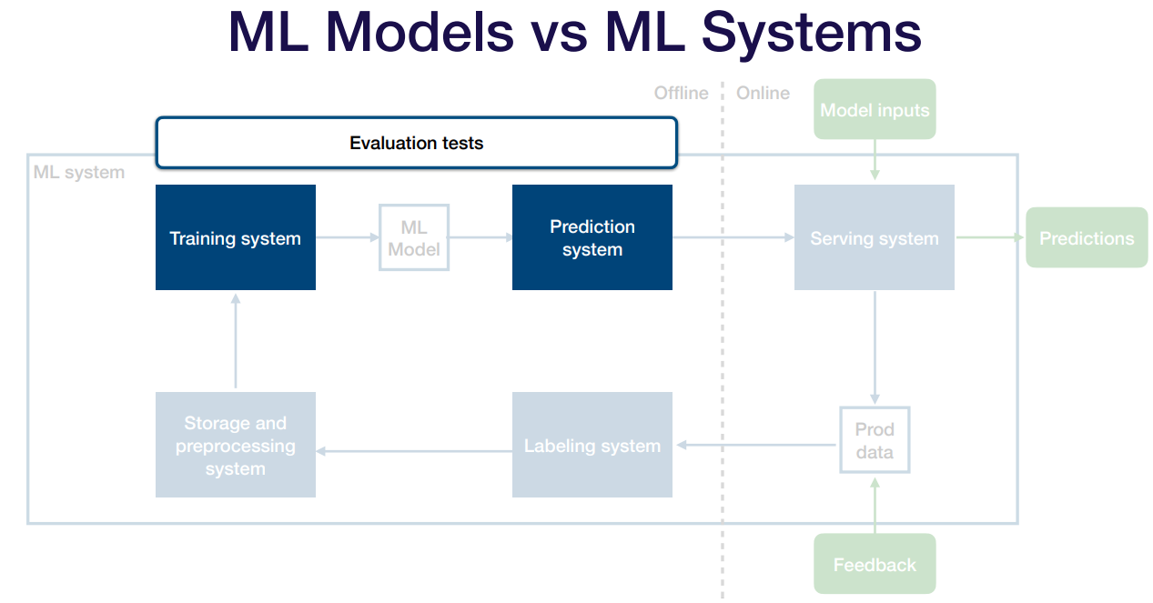 보면 정작 모델은 저렇게 작은 부분이고 데이터만 받고 예측만 내는 역할. 데이터를 받으면 사전정제 하고 내놓고 유저가 피드백 해주면 수정하고 등의 전체적인 과정.
