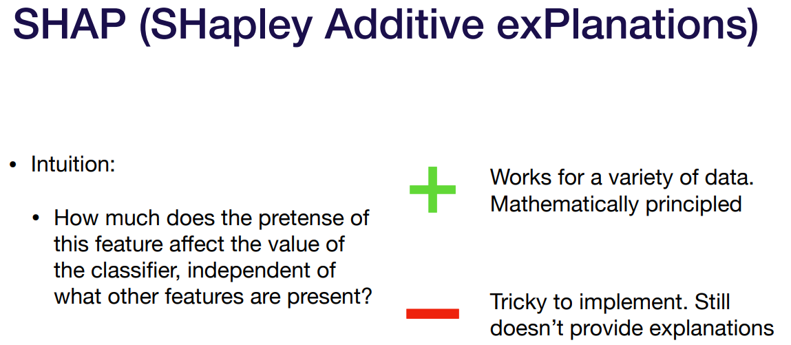 또 설명 가능한게 흥미있는 결과가 나와도 그게 정말인지 믿을 순 없다. 최근엔 모델이 설명 가능하게 하는 것 자체가 목적인 모델을 만들어 훈련하던데, 이렇게 목적이 설명하게끔 만든 모델은 원래 원했던 진짜 성능까지는 장담하지 못하게 될 수 있음.
