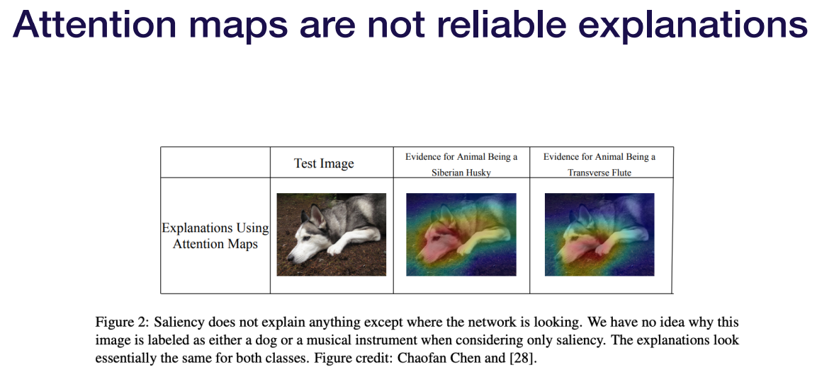 attention 모델은 이해는 가능하지만 설명 가능하지는 않음. 이해 가능하다는건 모델이 저기를 보고 있어서 저런 결과를 내놓는구나~ 라고 할 순 있지만 왜 저기를 보냐는 설명할 수 없음.