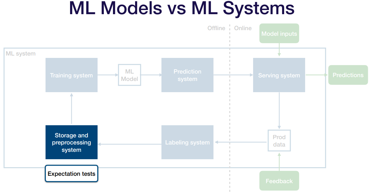 저기서 자세히 나눠서 설명해주던데 training system은 유닛코드가 버그없이 잘 되는지 보고(임시 이미지 넣어 예측값까지 잘 나오는지 확인하고) Storage and ... 부분은 데이터가 정말 잘 되는지 주기적으로 확인하고 Prediction system은 모델에 이상이 없는지. 잘못된 학습을 계속 한 상태로 방치하다가 다음에 봤을 때 완전히 달라질 수 있으니.