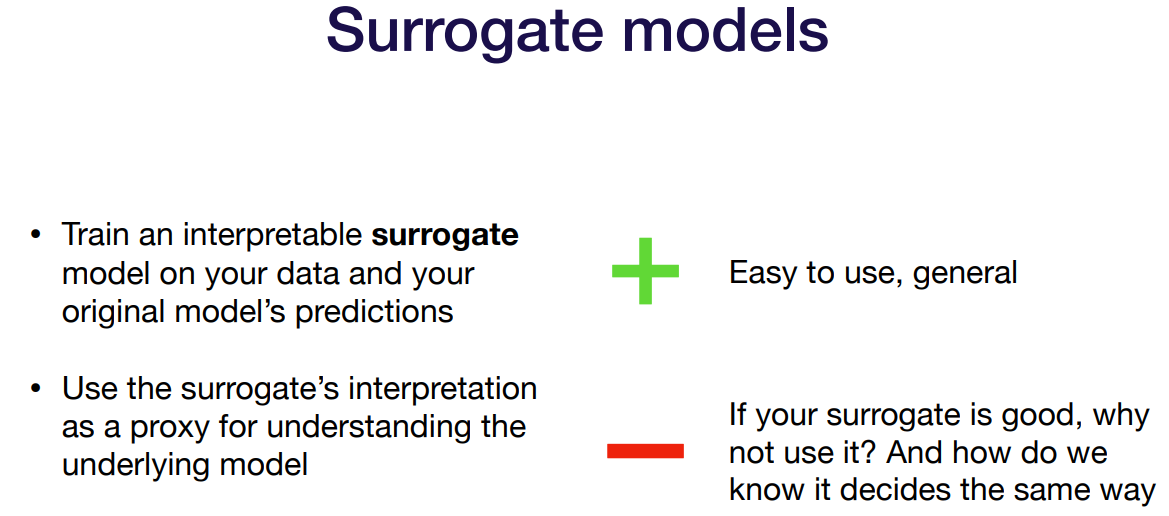 대체 모델은 어려운 모델이 있으면 그걸 설명 가능할 만큼 쉬운 모델로 바꿔서 어려운 모델을 설명하는 거임. 쓰기엔 쉽지만 의문이 있을 수 있음. 이게 정말 어려운 모델을 대신해서 설명할 수 있나? 서로 작동방식이 같다고 할 수 있나? 만약 서로 틀리면?