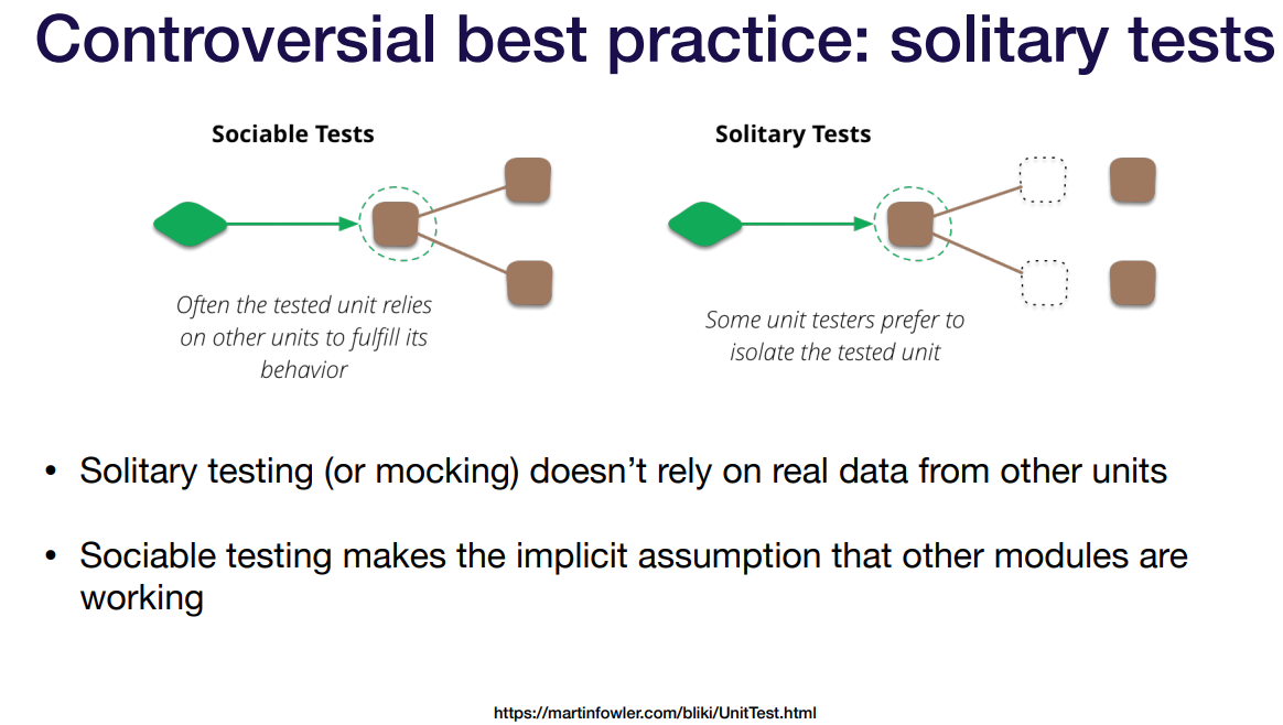 논란이 되는것 중 하나는 유닛테스트에서 Sociable Tests랑 Solitary Tests가 있음.