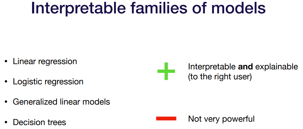 이해 가능한 모델 집군들. 모델은 애초에 weight와 bias가 있고 이거에 따라 더하고 빼는거 밖에 없음. 그래서 저런 모델들은 이해 가능하고 설명 가능하지만 간단해서 엄청 좋지는 않음.