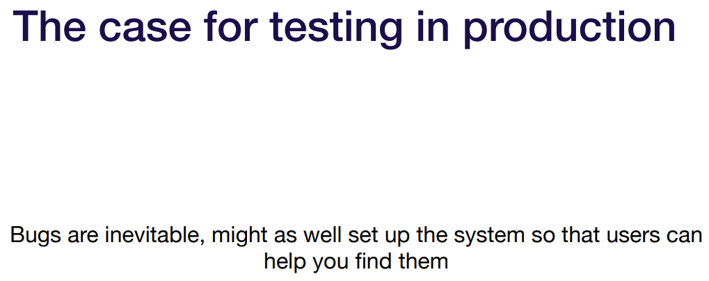 고전적인 의미에서 test in prod는 버그를 못찾게 하지만 요샌 바뀐 것 같다.