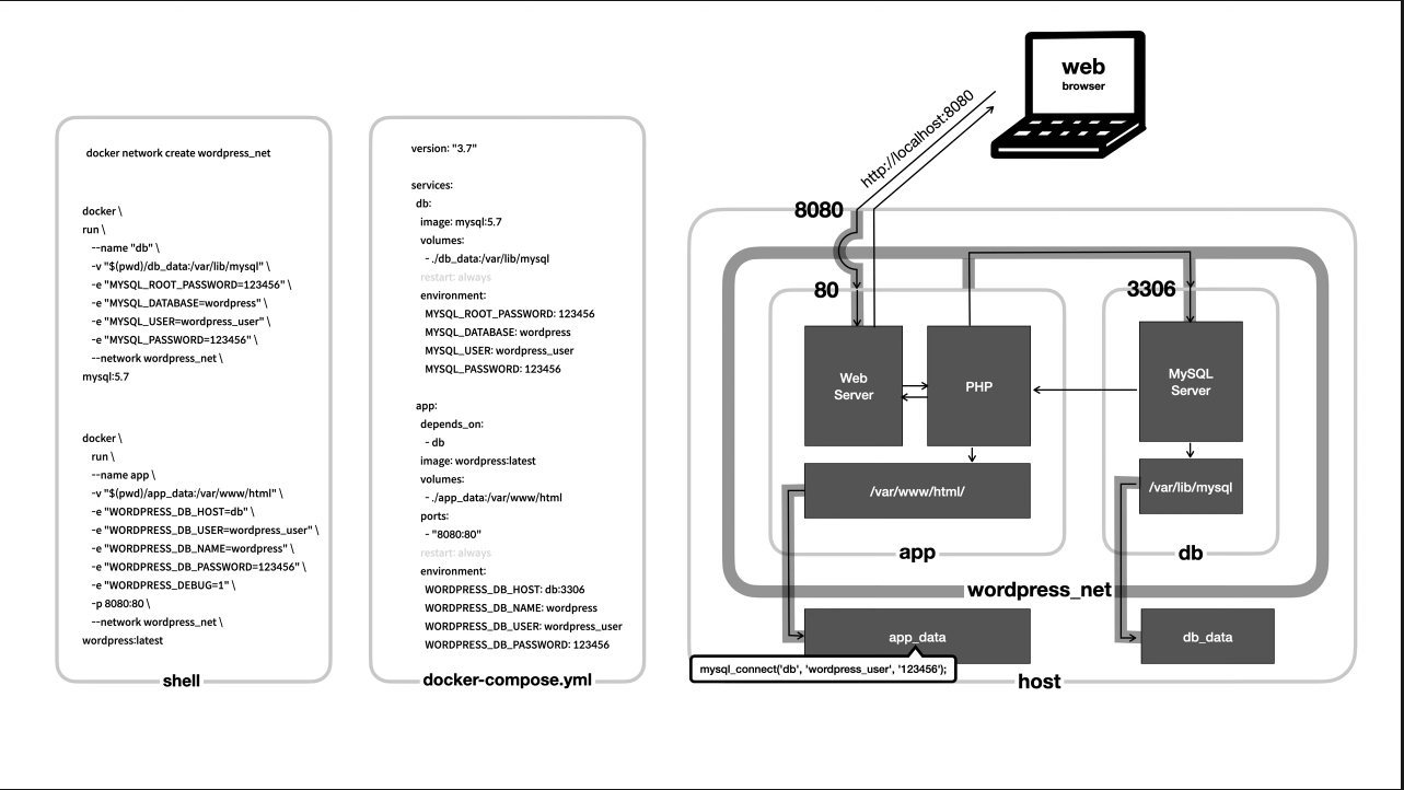 해주면 적어놓은 것들의 컨테이너들을 알아서 만들어 실행해준다. services 하나에 묶여있으면 알아서 하나의 네트워크임.