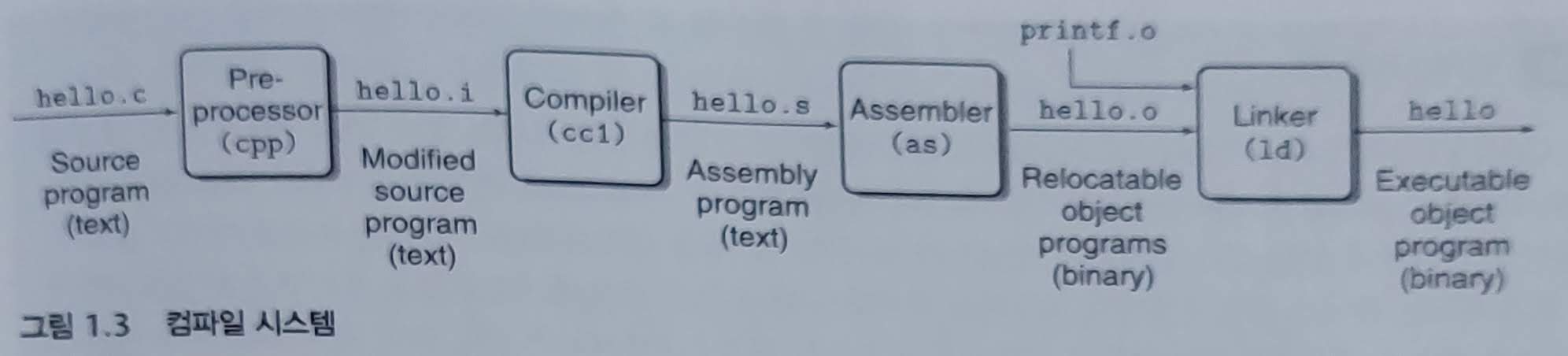 이 각 C로 이루어진 문장들은 실제 실행이 가능한 저급 인스트럭션으로 번역되어야 그제서야 실행이 된다.