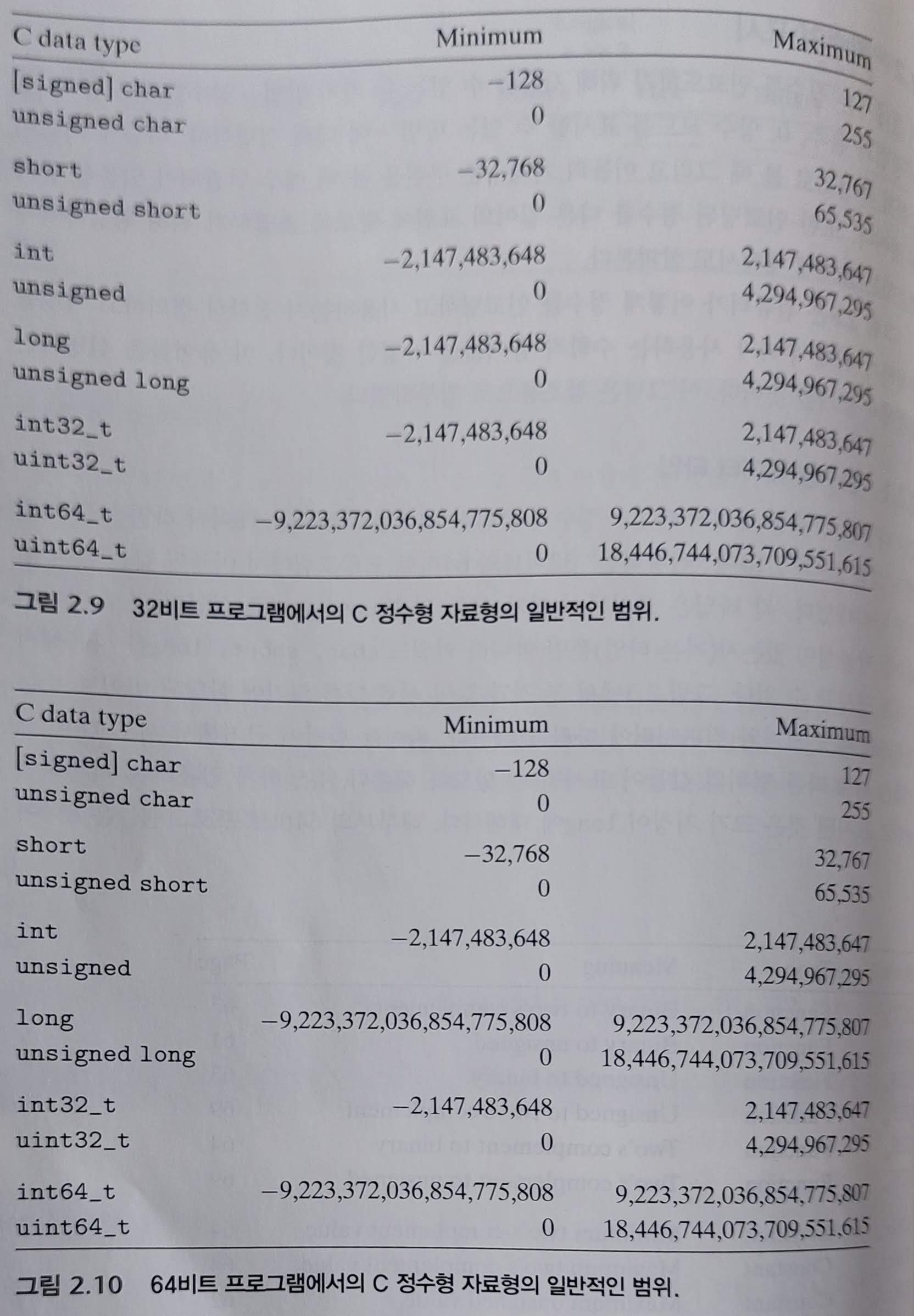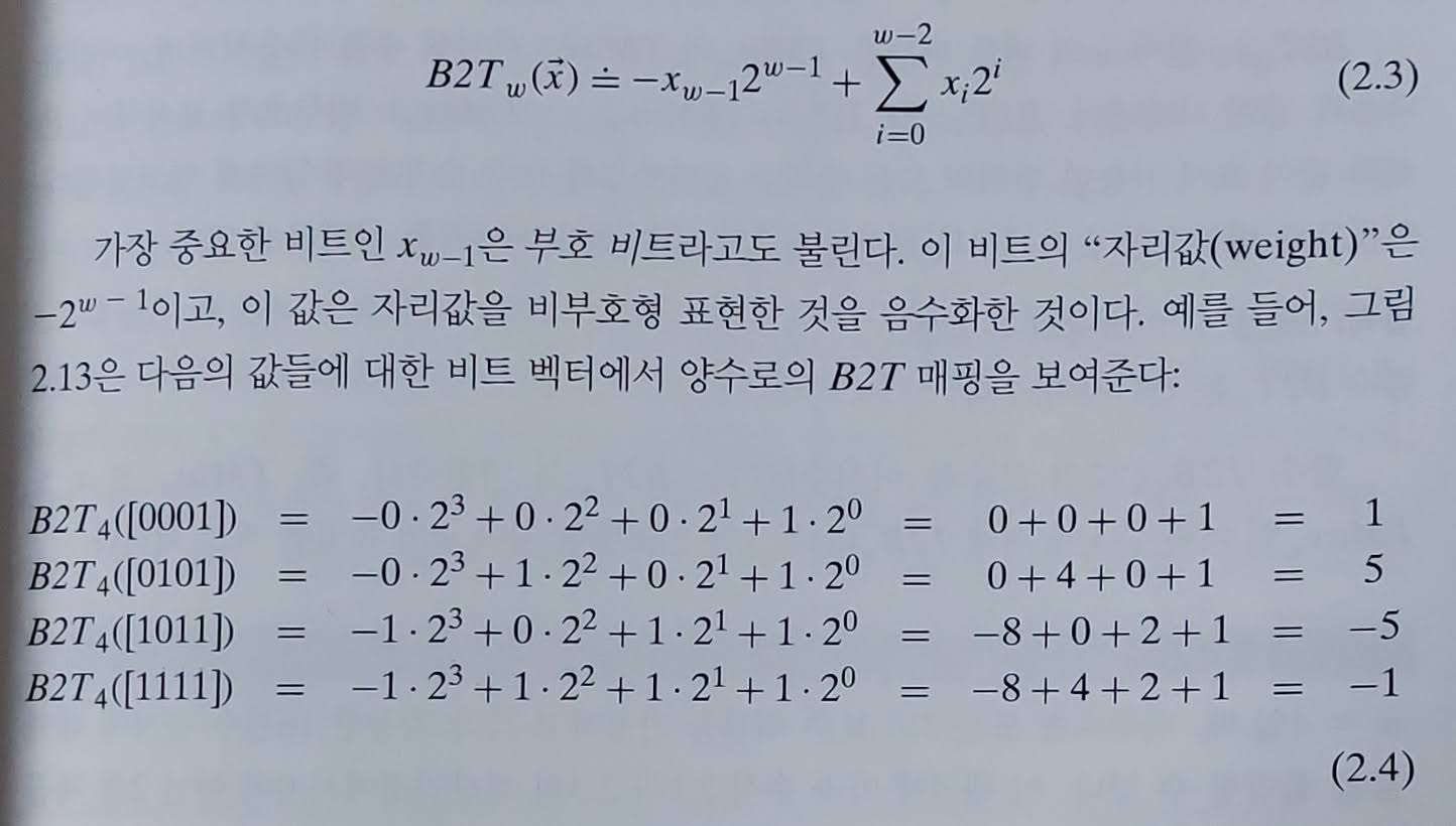 이 뒤에는 signed, unsigned의 데이터 타입과, 2의 보수, 이 데이터들을 더하거나 뺐을 때 일어나는 overflow랑 underflow, 범위, IEEE 표준 부동소수점, 이것들을 수학적으로 정의하고 증명한 내용들임. 이미 알고 있고 자세히 알만한 내용은 아니라서 대충 읽었다.