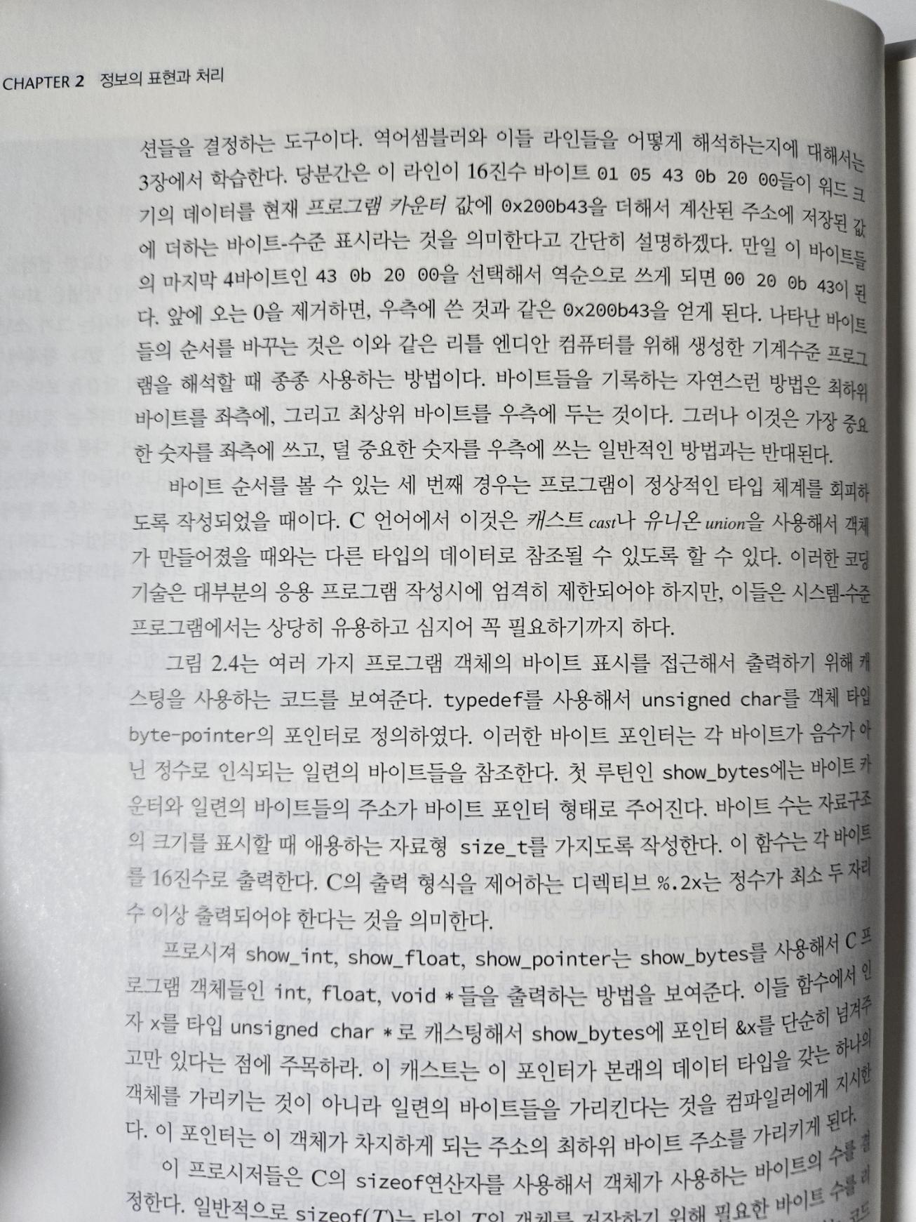 이 뒤에는 signed, unsigned의 데이터 타입과, 2의 보수, 이 데이터들을 더하거나 뺐을 때 일어나는 overflow랑 underflow, 범위, IEEE 표준 부동소수점, 이것들을 수학적으로 정의하고 증명한 내용들임. 이미 알고 있고 자세히 알만한 내용은 아니라서 대충 읽었다.