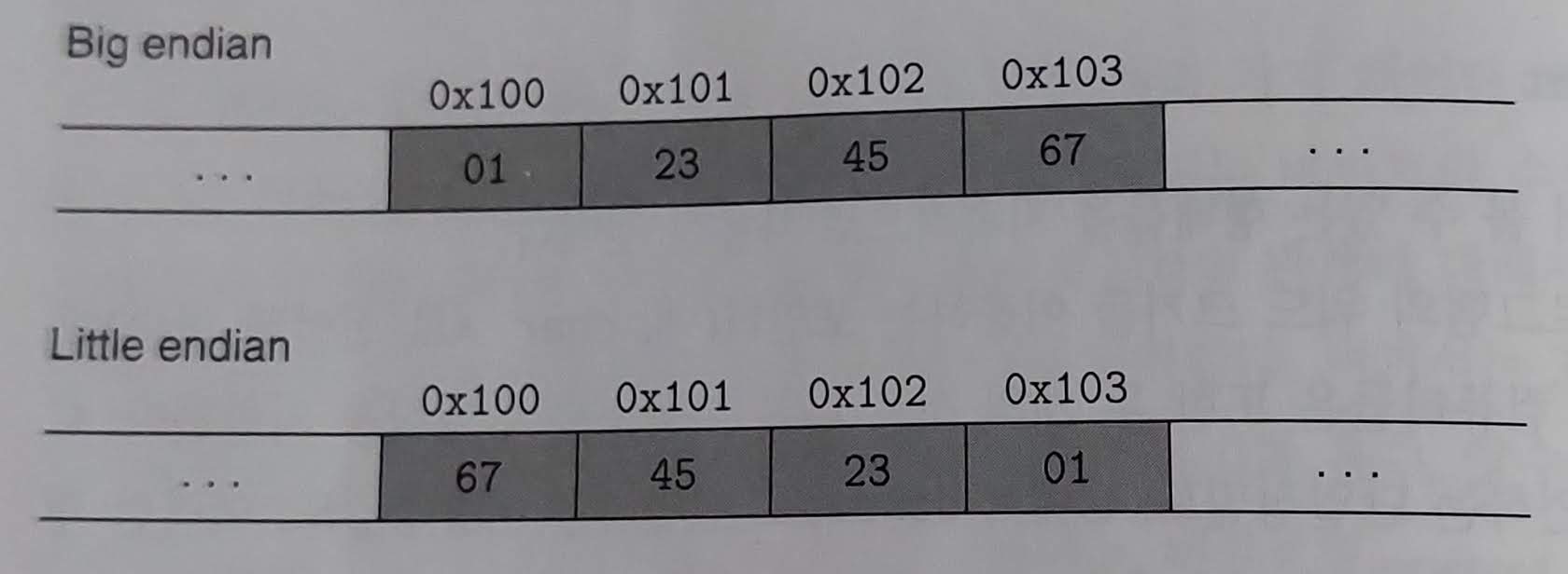 메모리같은 저장장치에 한 공간 당 1byte크기만큼 저장할 수 있는데(물론 어디에 저장할지 같은 자세한 저장 방식은 나중에 나올듯), 위 예시에서 int는 4byte가 필요해서 연속으로 저장할건데 1byte를 4개로 나눠서 저장해야하니까 순서를 어떻게 할거냐가 문제다. 그래서 빅엔디안, 리틀엔디안 방법이 나온거고. 어떤걸 쓰는지는 CPU마다 다름(대채로 리틀엔디안 쓰는듯).
