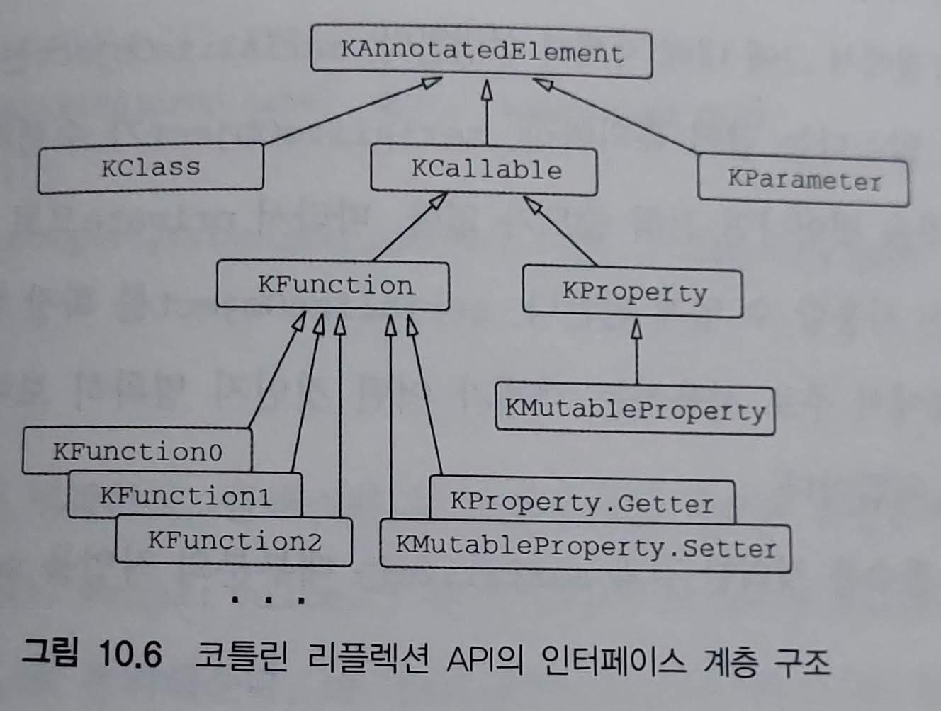코틀린에서 리플렉션을 사용하려면 두 가지 서로 다른 리플렉션 API를 다뤄야 한다. 첫 번째는 자바가 java.lang.reflect 패키지를 통해 제공하는 표준 리플렉션이고, 두 번째 API는 코틀린이 kotlin.reflect 패키지를 통해 제공하는 코틀린 리플렉션 API다.