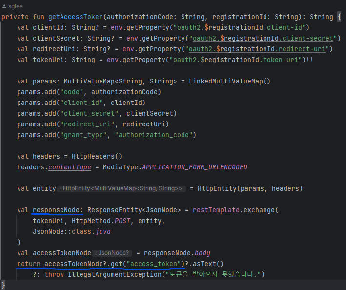 그럼 accessToken 변수에 요청한 token이 들어간다.