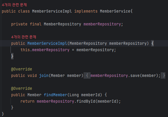 물론 저렇게 Memory~~ 하면 클래스를 바꿀 때 저 이름도 바꿔야 해서 개방-폐쇄 원칙이 깨진다. 이런걸 수정하면서 스프링을 알아볼 예정.