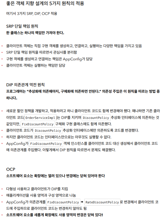 근데 이건 혼자서 어찌 할 수 있는 문제가 아니다. 그래서 AppConfig를 따로 만들고 얘가 알아서 만들어주고 주입해주고 하도록 만들어서 OCP를 지키고, DI를 사용해서 DIP를 지키는 것.