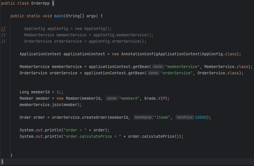 그럼 이제 구체화 인스턴스 방식을 바꾸더라도 AppConfig의 한줄만 바꾸면 된다. 이는 모든 서비스들에서 AppConfig를 일일히 만들어서 해줬으니까 가능한 것.