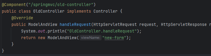 그렇게 핸들러를 돌았다면 이제 이 핸들러가 내가 작성한 컨트롤러를 실행할 것이다. 위 그림을 보면 내 컨트롤러가 ModelAndView를 반환한다고 되어있다.