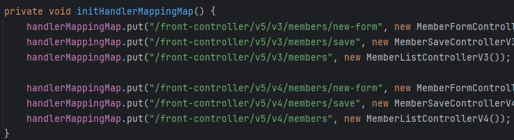 v2로 개선한 버전은 저 requestmapping들이 메소드에 붙을 수 있다는 것에 착안해 그냥 하나의 클래스 안에 넣는 것이다.