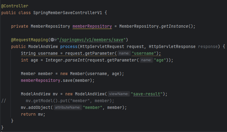 지금까지 직접 만들었던 프레임워크는 사실 학습을 위해 일부러 스프링 MVC와 비슷하게 만들었다. 진짜 똑같이 생겼다.